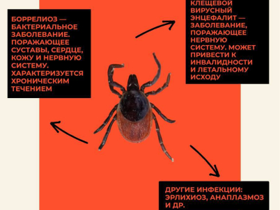 Эти мелкие паукообразные переносят опасные инфекции: клещевой вирусный энцефалит, поражающий нервную систему, боррелиоз, а также анаплазмоз и эрлихиоз.