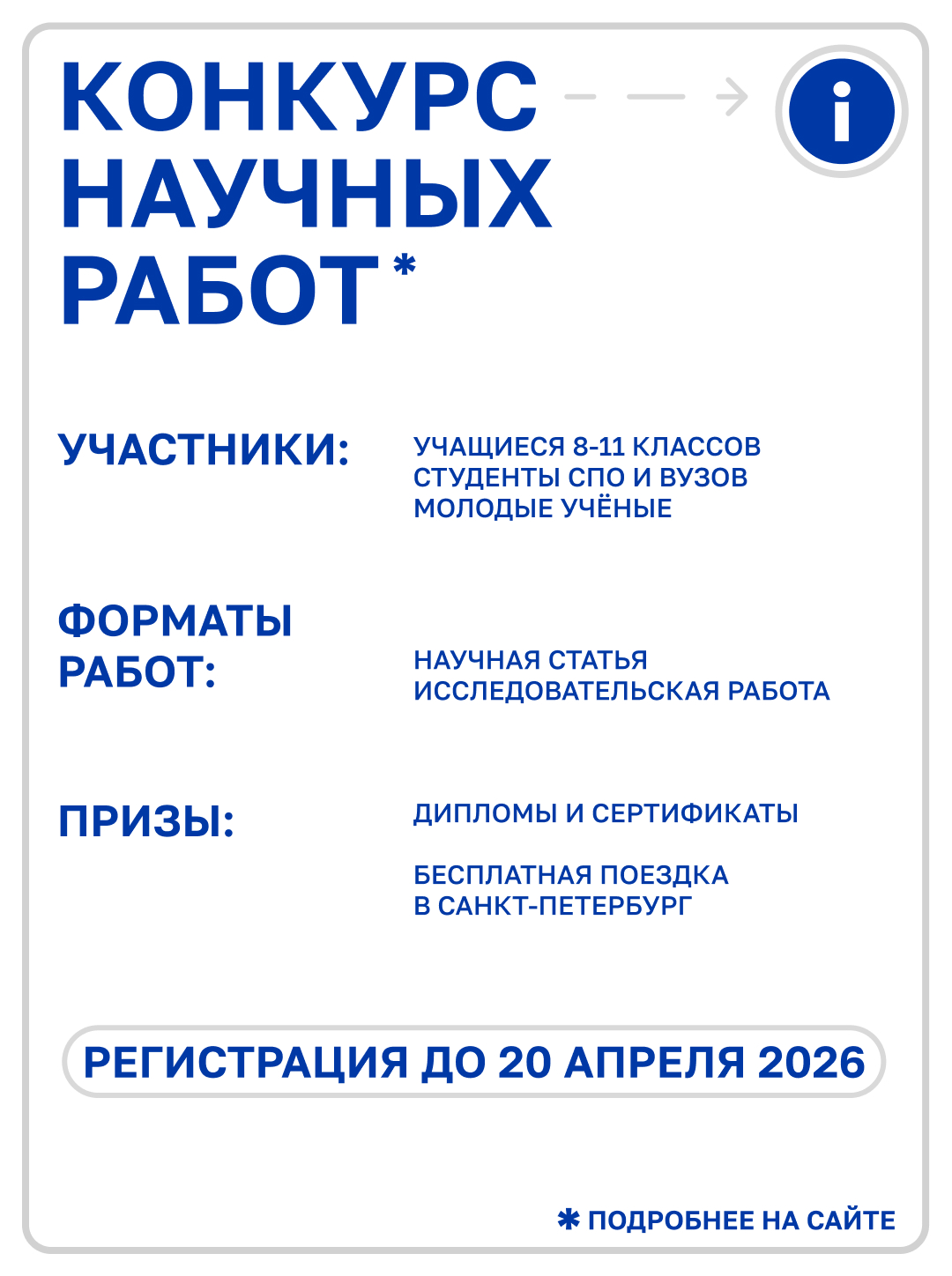 Старт приёма заявок уже открыт и продлится до 20 апреля 2026 года включительно.